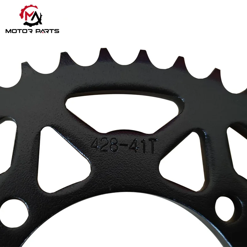 ที่แม็กซ์ เทรดดิ้งเฟืองรถจักรยานยนต์ 428-41T เป็นส่วนประกอบระบบส่งกำลังระดับพรีเมียมที่ออกแบบมาสำหรับผู้ขับขี่ที่ต้องการอายุการใช้งานและสมรรถนะที่ยาวนาน ออกแบบทางวิศวกรรมมาโดยเฉพาะสำหรับโซ่ซีรีส์ 428 สเตอร์หลังแบบ 41 ฟันนี้ให้อัตราส่วนการส่งผ่านที่สมดุลซึ่งช่วยเพิ่มอัตราเร่งและประสิทธิภาพการใช้เชื้อเพลิง