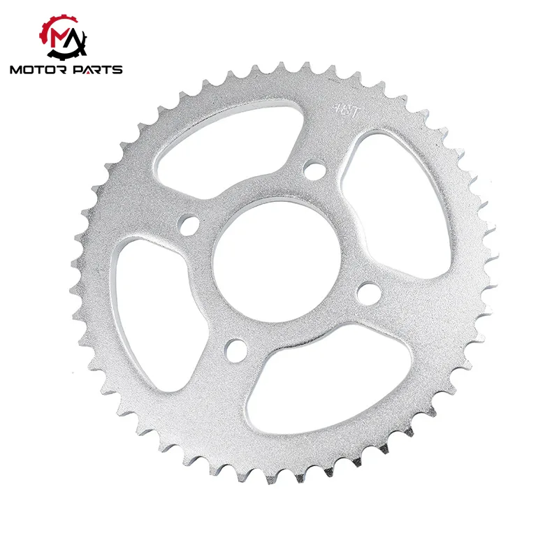 สเตอร์มอเตอร์ไซค์ 428-48T ผลิตจากเหล็กกล้าคาร์บอนปานกลาง 45 ชิ้น ซึ่งเป็นวัสดุที่มีปริมาณคาร์บอนที่สมดุล เพื่อหลีกเลี่ยงไม่ให้เหล็กกล้าคาร์บอนสูงเปราะและเหล็กกล้าคาร์บอนต่ำมีความแข็งแรงไม่เพียงพอ วัสดุนี้มีความแข็งแรงเป็นฐานที่แน่นอนโดยไม่ต้องผ่านการบำบัดความร้อน ซึ่งเป็นไปตามข้อกำหนดพื้นฐานของการส่งกำลัง และคุณสมบัติทางกลได้รับการปรับปรุงอย่างมีนัยสำคัญหลังจากการอบชุบด้วยความร้อนโดยมืออาชีพ