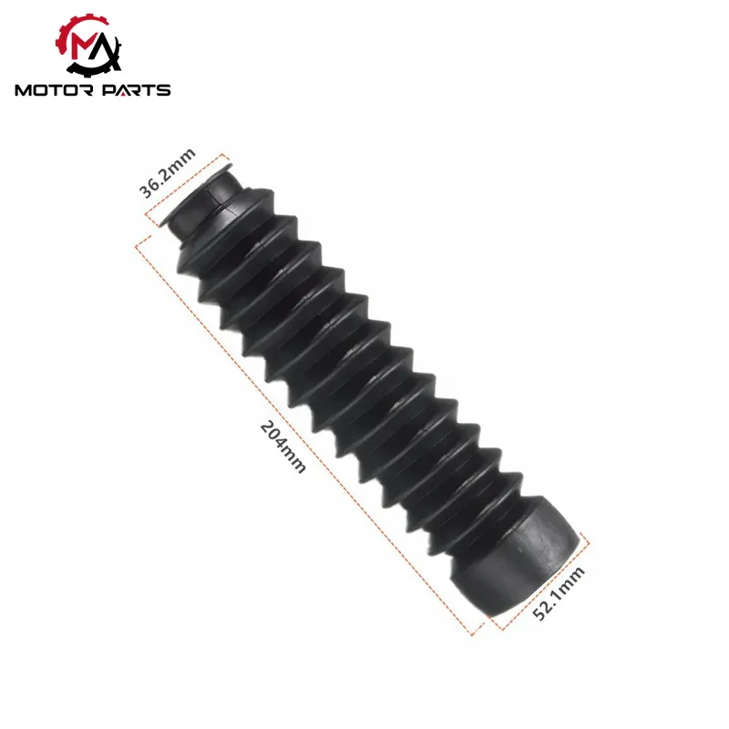 ฝาครอบกันฝุ่นโช้คอัพหน้าของรถจักรยานยนต์ทำจากวัสดุที่มีความยืดหยุ่นสูงและอ่อนนุ่ม ซึ่งสามารถรองรับการสั่นสะเทือนเล็กน้อยที่เกิดจากการขยายและการหดตัวของโช้คอัพได้อย่างมีประสิทธิภาพ ในขณะเดียวกันก็ลดเสียงรบกวนที่เกิดจากการสั่นสะเทือนได้อย่างมากในขณะที่ปรับปรุงความสะดวกสบายในการขับขี่ สินค้าบางชนิดได้รับการออกแบบเป็นพิเศษด้วยโครงสร้างที่หนาขึ้นซึ่งเพิ่มน้ำหนักได้ถึง 30% เมื่อเทียบกับรุ่นทั่วไป สามารถต้านทานแรงกระแทกภายนอกได้อย่างมาก เช่น การกระแทกจากหินเล็กๆ และรอยขีดข่วนของกิ่งไม้ จึงให้การปกป้องโช้คอัพอย่างครอบคลุม