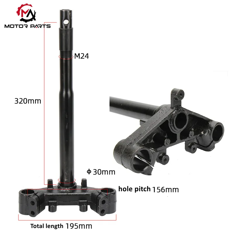 คอพวงมาลัยรถจักรยานยนต์ Max Trading JOG125 มีการออกแบบโครงสร้างแบบบูรณาการที่ออกแบบมาเพื่อสกู๊ตเตอร์โดยเฉพาะ เสาและแผ่นเชื่อมต่อด้านล่างเชื่อมต่อกันอย่างแน่นหนาด้วยการเชื่อม เสริมพื้นที่จัดเก็บด้านหน้าและรูปแบบด้านหน้าที่กะทัดรัด ขนาดมาตรฐานช่วยให้มั่นใจได้ว่าตะเกียบหน้าและแฮนด์จะเข้ากันได้อย่างลงตัว ป้องกันการเบี่ยงเบนของชุดประกอบในระหว่างการดัดแปลงหรือเปลี่ยน