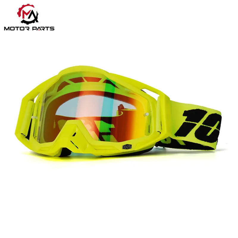 แว่นตารถจักรยานยนต์พร้อมเลนส์สีใช้วัสดุโพลีคาร์บอเนต (PC) เกรดการบินและอวกาศซึ่งเกิดขึ้นจากการฉีดขึ้นรูปที่มีความแม่นยำสูงที่อุณหภูมิสูง ส่งผลให้โครงสร้างมีเสถียรภาพและมีความแข็งแรงสูงขึ้น