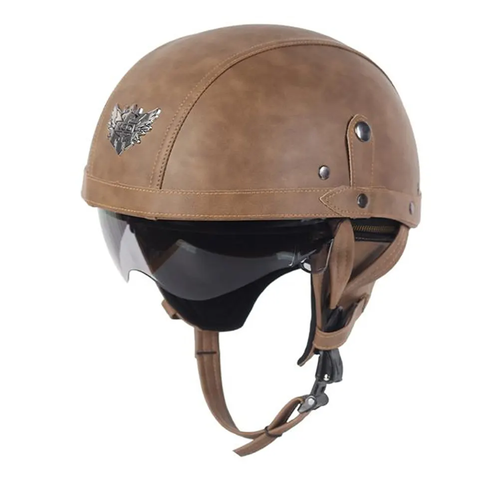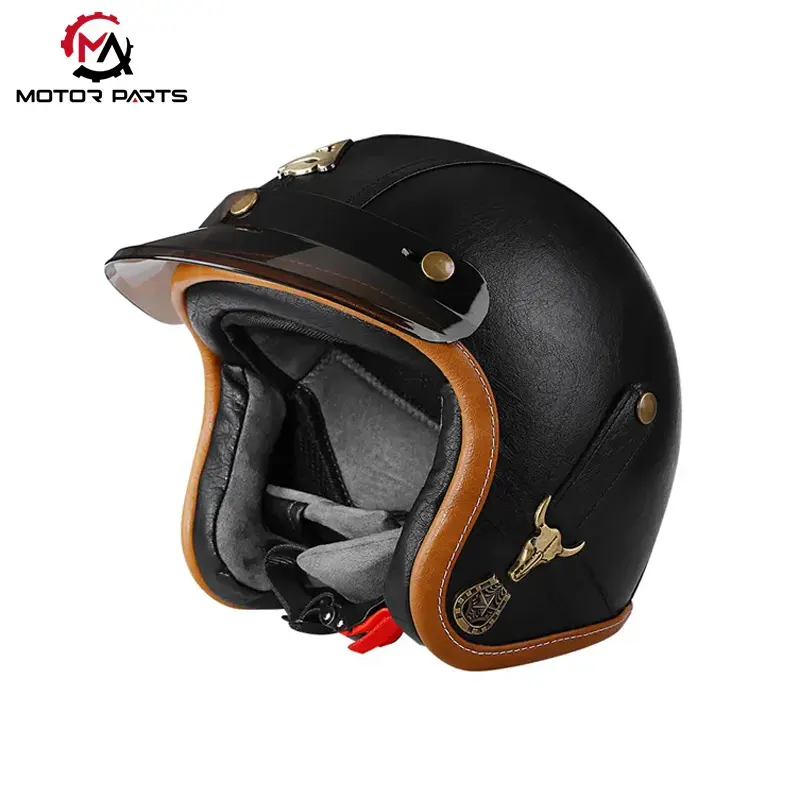 หนังหมวกกันน็อคครึ่งหน้าสำหรับรถจักรยานยนต์ China พร้อมแว่นตา เป็นผลิตภัณฑ์หมวกกันน็อคครึ่งหน้าสไตล์ย้อนยุคจาก Manufacturing Max Trading ที่ผสมผสานการป้องกันด้านความปลอดภัยและการออกแบบที่มีสไตล์ เหมาะสำหรับผู้ขับขี่ที่ให้ความสำคัญกับทั้งความเป็นตัวตนและการใช้งานจริง
