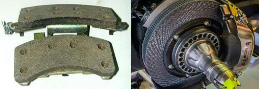 อย่างแรกคือผ้าเบรกใยหินที่เลิกใช้ไปนานแล้ว และอย่างที่สองคือระบบเบรกคาร์บอนไฟเบอร์สูงที่ได้รับการดัดแปลงสำหรับการแข่ง F1 หรืองานระดับมืออาชีพ อันแรกเบรกไม่ได้ แต่อันหลังไม่สามารถเบรกได้